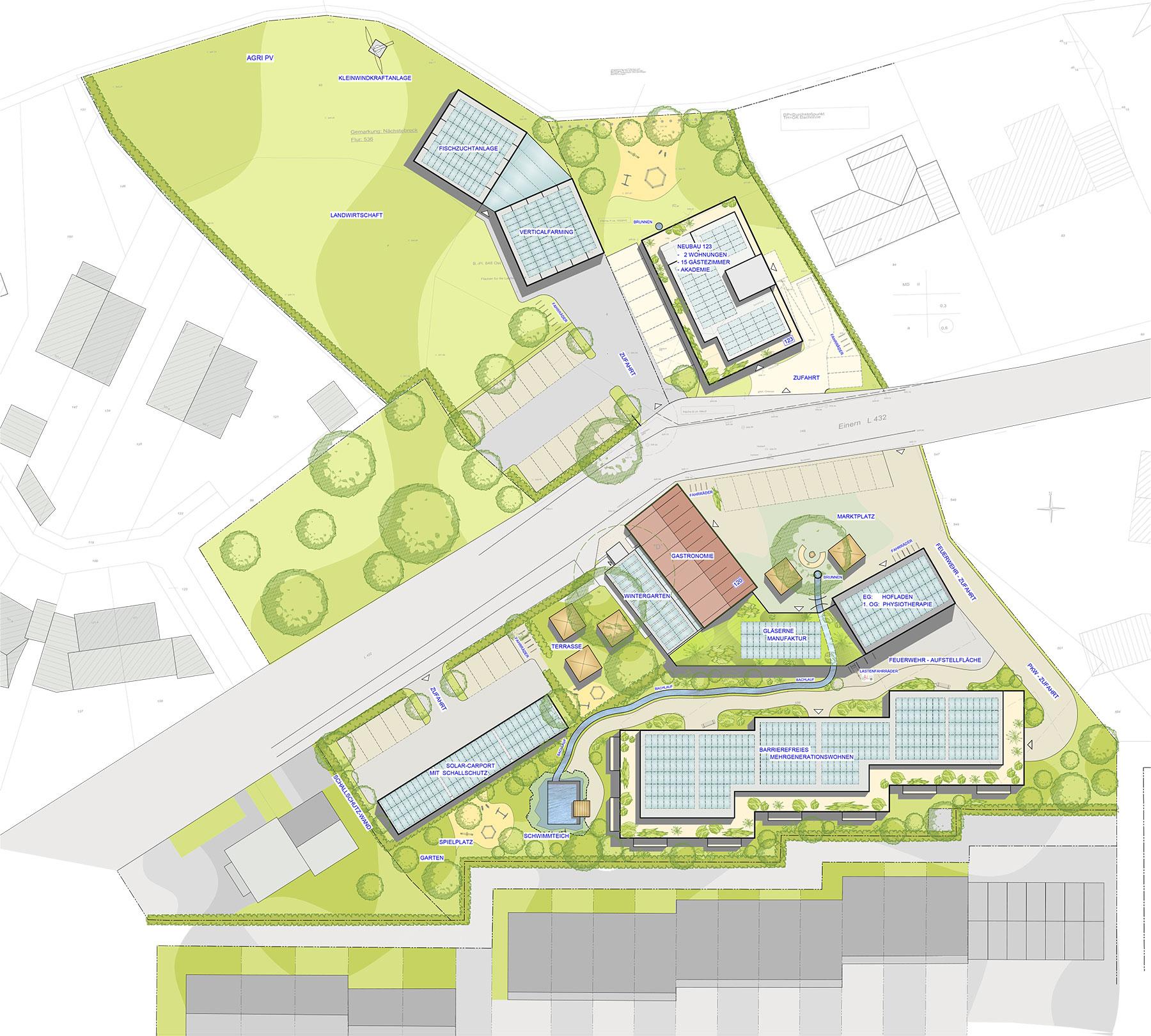 Eigenes Wärme-, Strom-, Wasser- und Datennetz zwischen allen Gebäuden